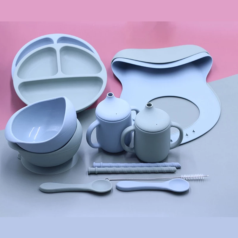 - Baby Weaning Feeding Supplies for Toddlers, Baby Feeding Utensils Set Silicone Suction Plate Baby Bib Bowl